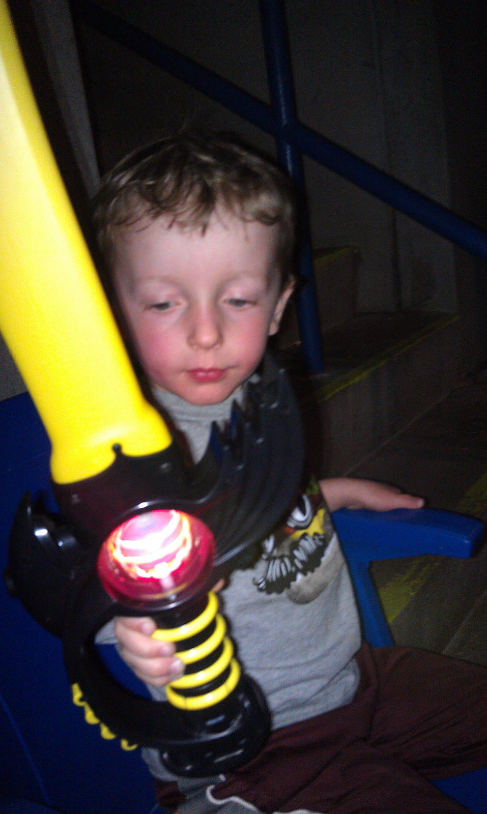 His first circus souvenir..a light up sword!